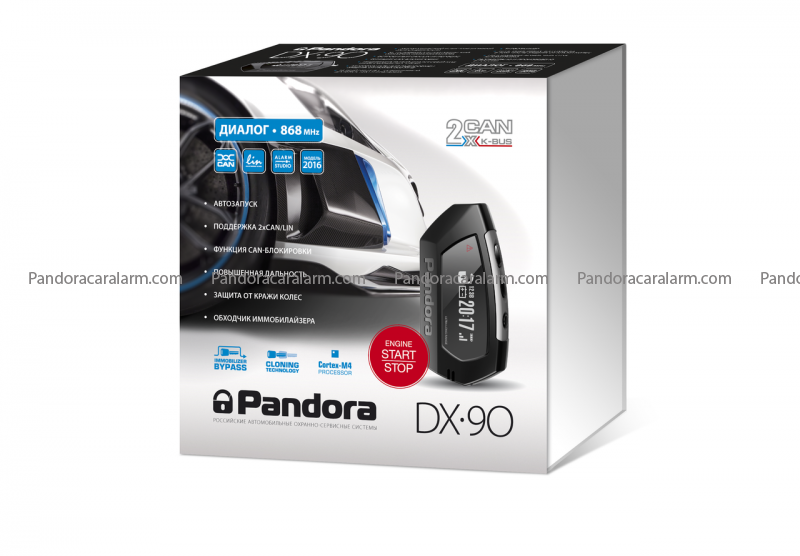 Pandora DX-90 is a car alarm system with 2CAN and LIN interfaces which allow working properly with modern cars and controlling engine preheaters.